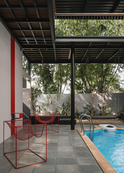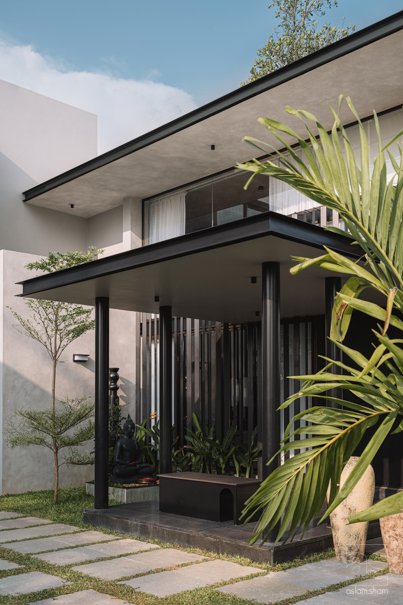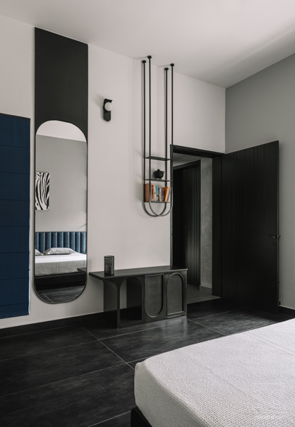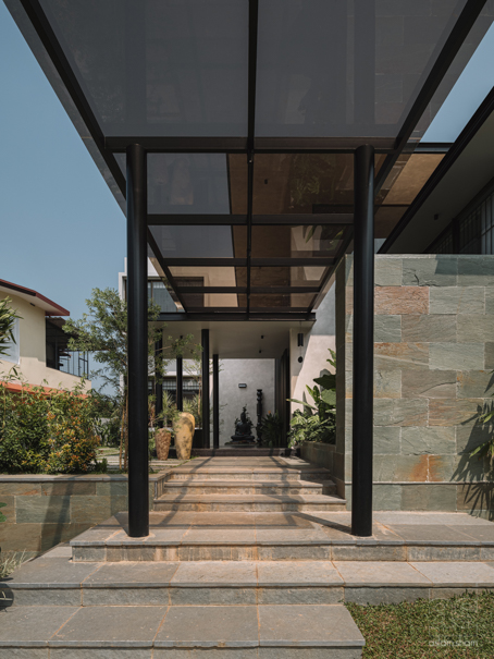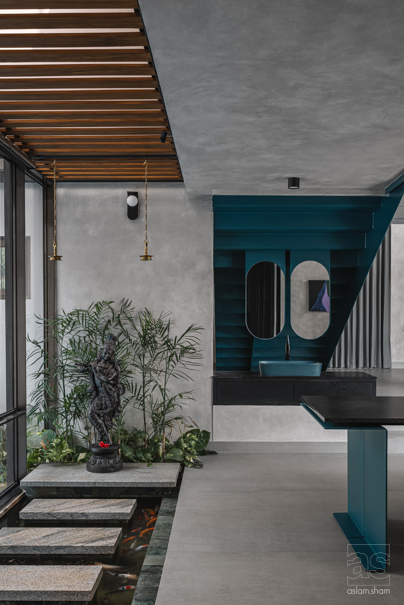 Exposed concrete forms its bones—raw, grey, and unpolished—balanced by light, air, and scale. High ceilings and open voids soften the austerity, allowing stillness to move.